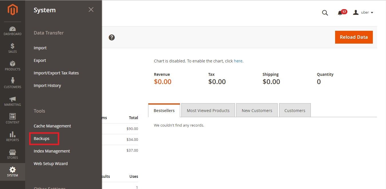 2. After login, click on ‘System’ on the left, and then again click ‘Backups’ under the head ‘Tools.’