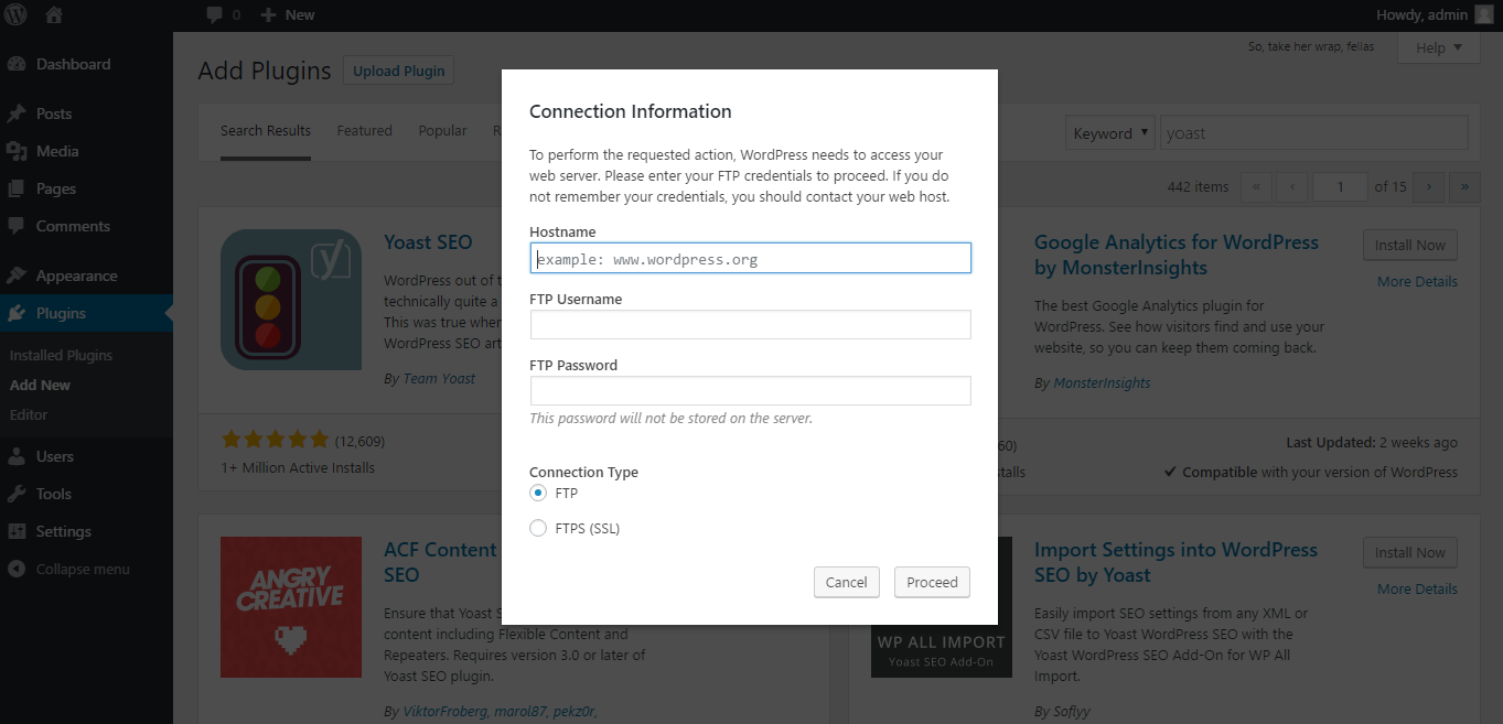 You may be asked to provide your site’s FTP details. Furnish the details accordingly and click on the ‘Proceed’ button.